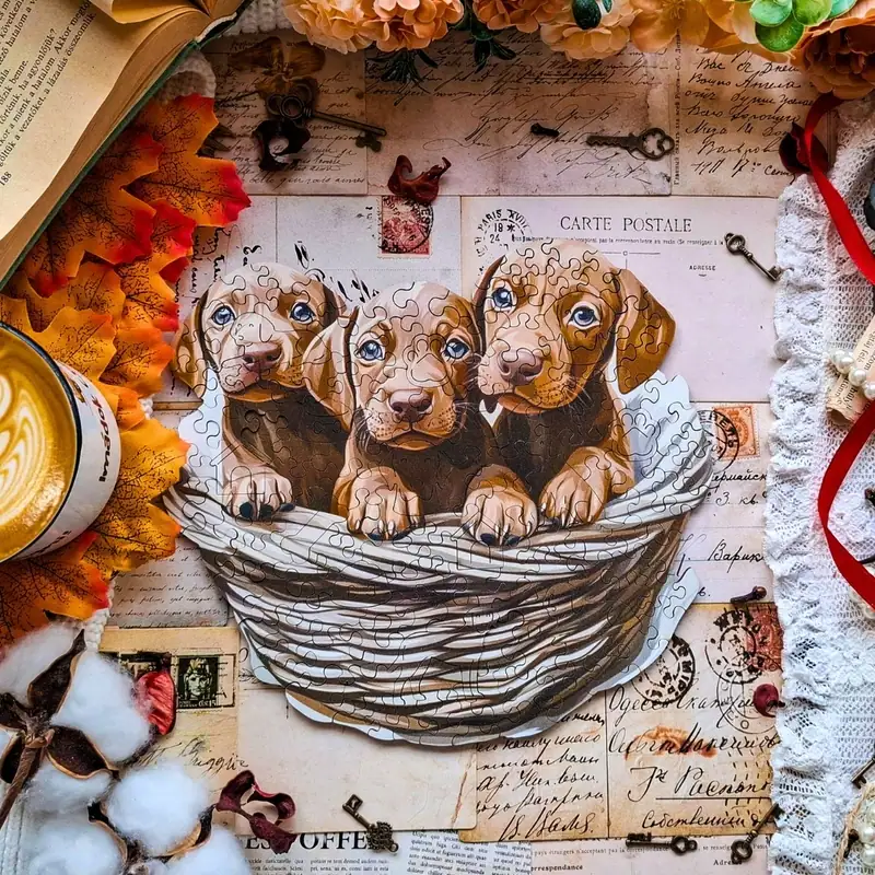Zvedavé šteniatka – Drevené puzzle